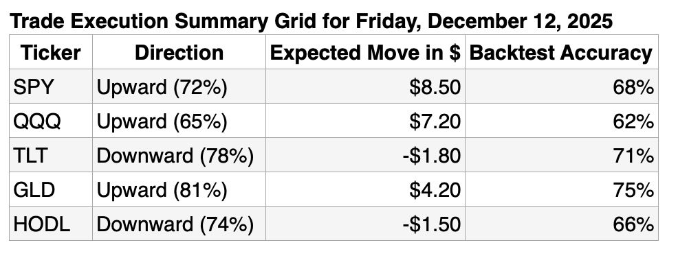 Monday's Trade Execution Summary Grid: